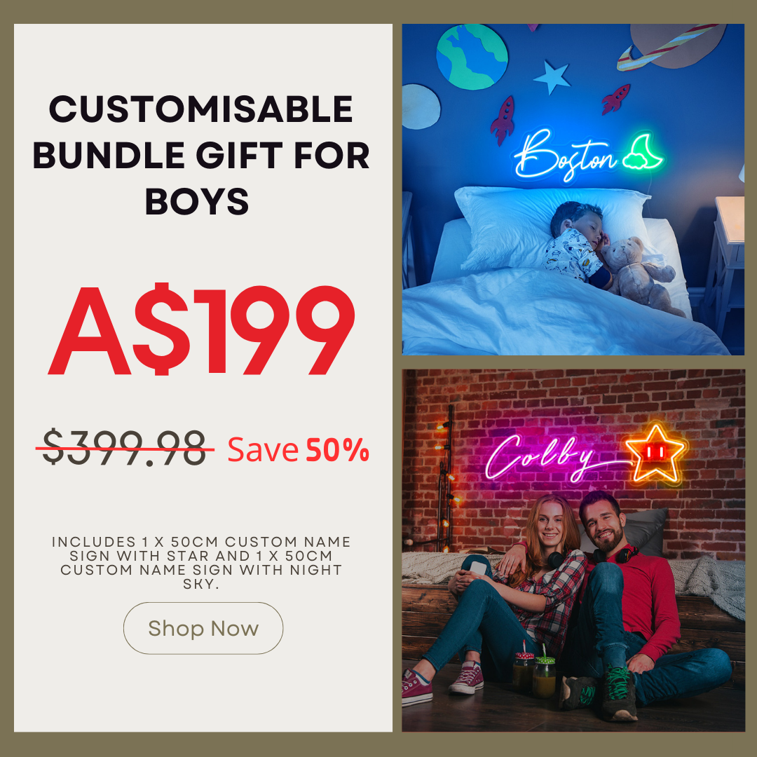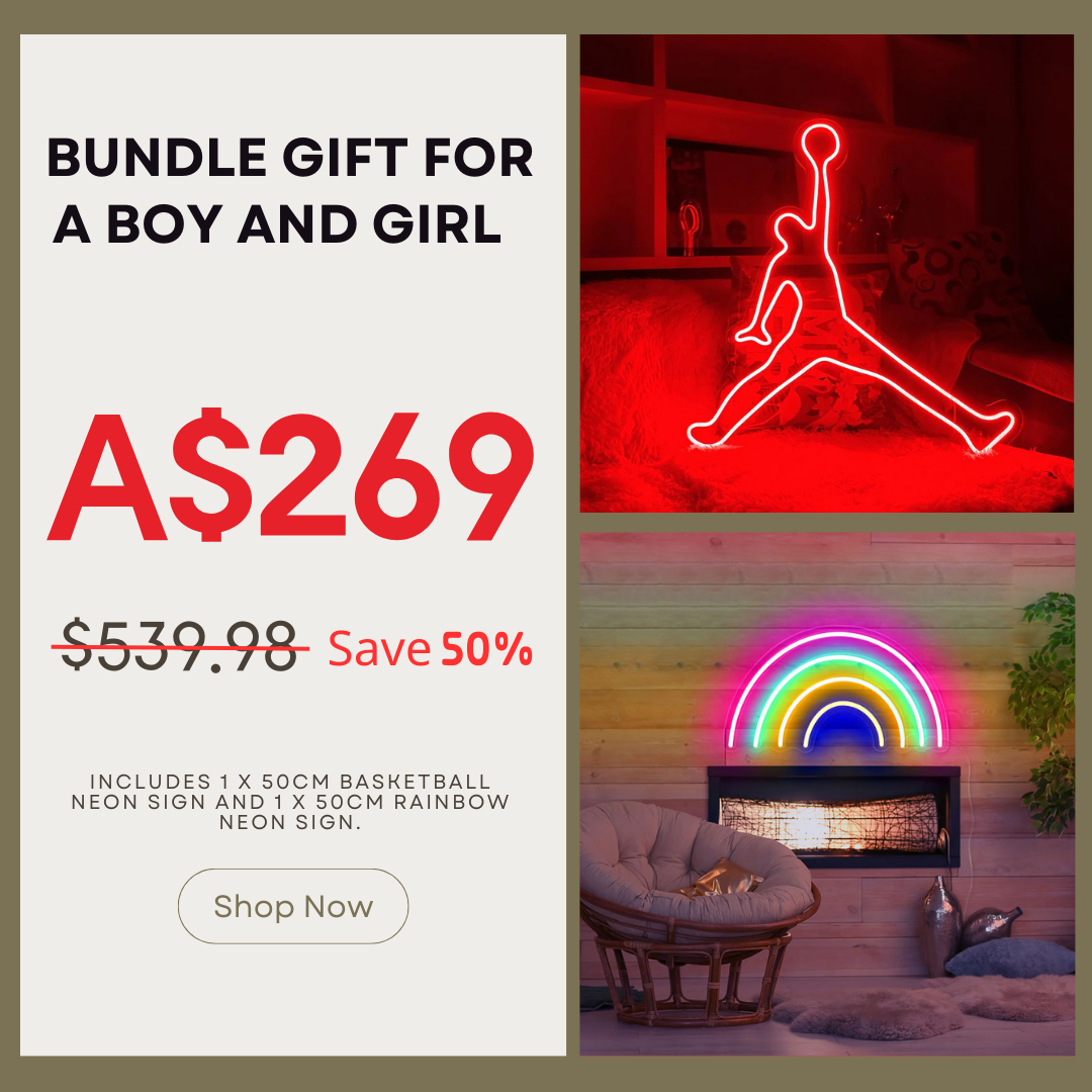 Want to tick everyone off on your Christmas list? Look no further! Our carefully curated collection of neon gift bundles is here to make holiday gifting a breeze. We’ve got options for all ages and interests, from your 10-year-old son to your 55-year-old mum. Plus, our gift bundles offer incredible value, with TWO neon signs for the price of one.