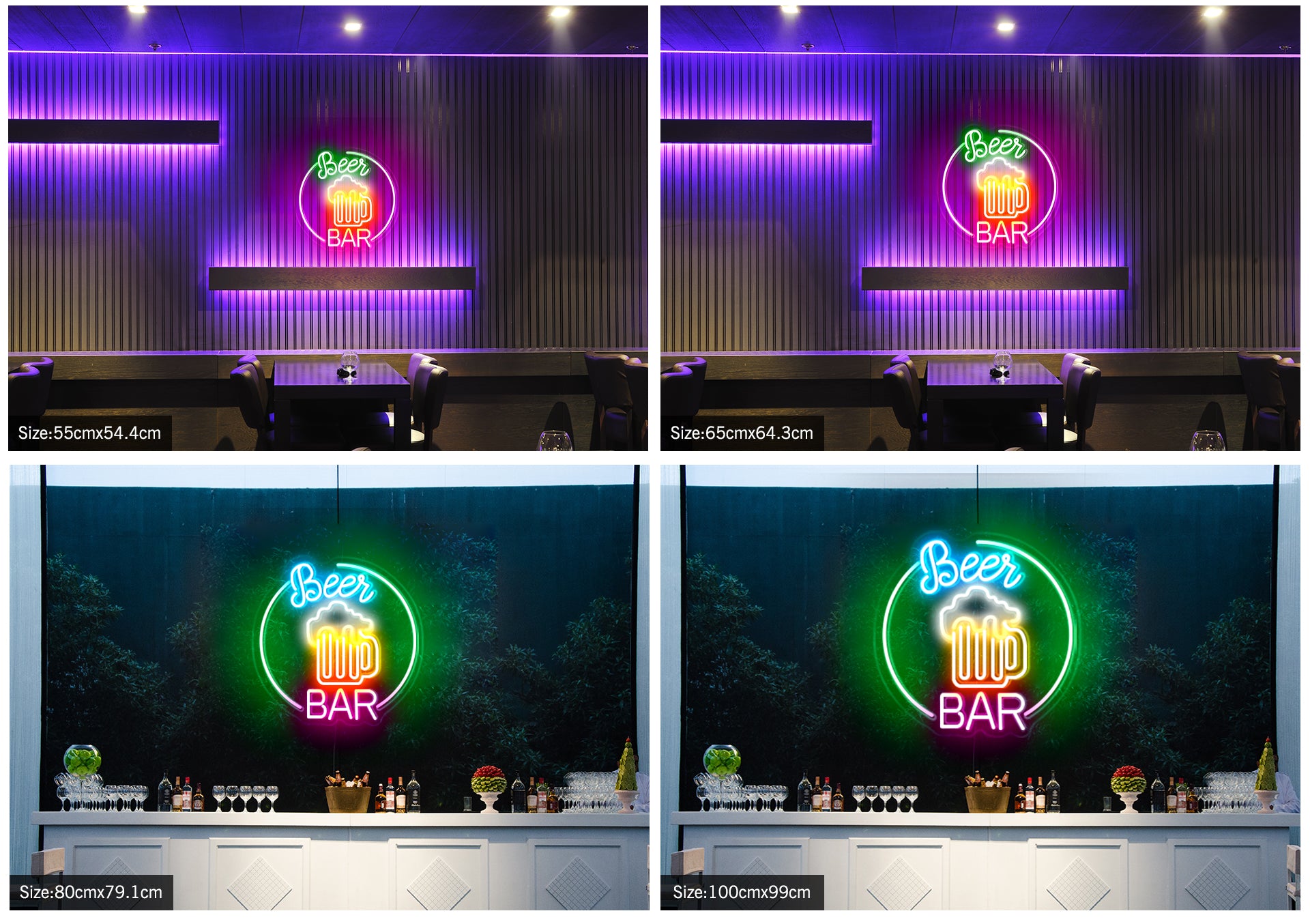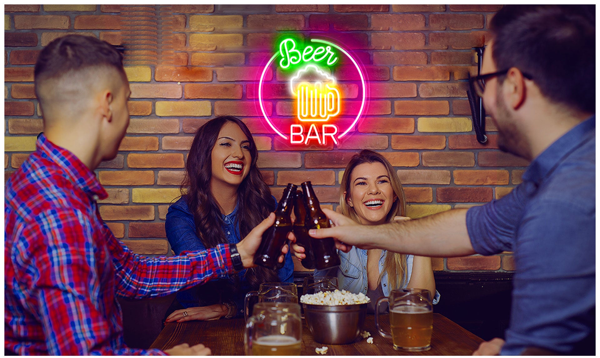 This Beer BAR Neon Light is the perfect addition to any bar space. Its unique design will draw customers in and get the party started. Made with safe LED neon, this sign is hassle-free and creates a fun, inviting atmosphere. Relax and enjoy a cold beer with this neon light.