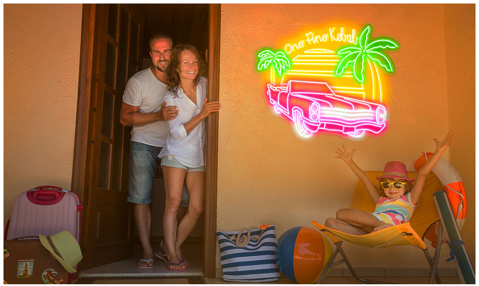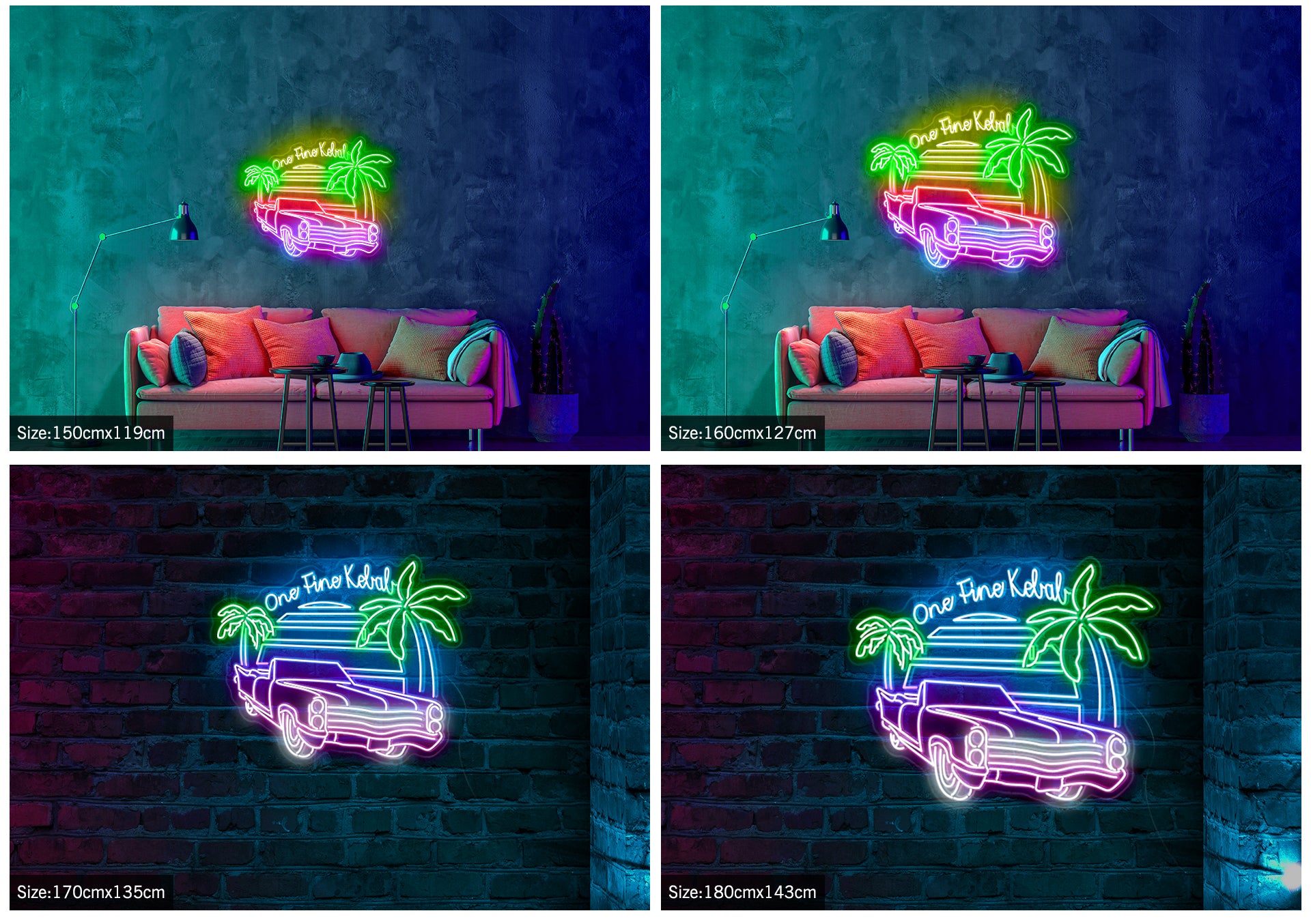 Looking for a way to add some funky coastal vibes to your home or business? Check out our customisable Car & Coconut Tree neon art! With the ability to add your own text and choose your own colors, you'll feel like you're on vacation every day. Fun, cool, and totally unique.
