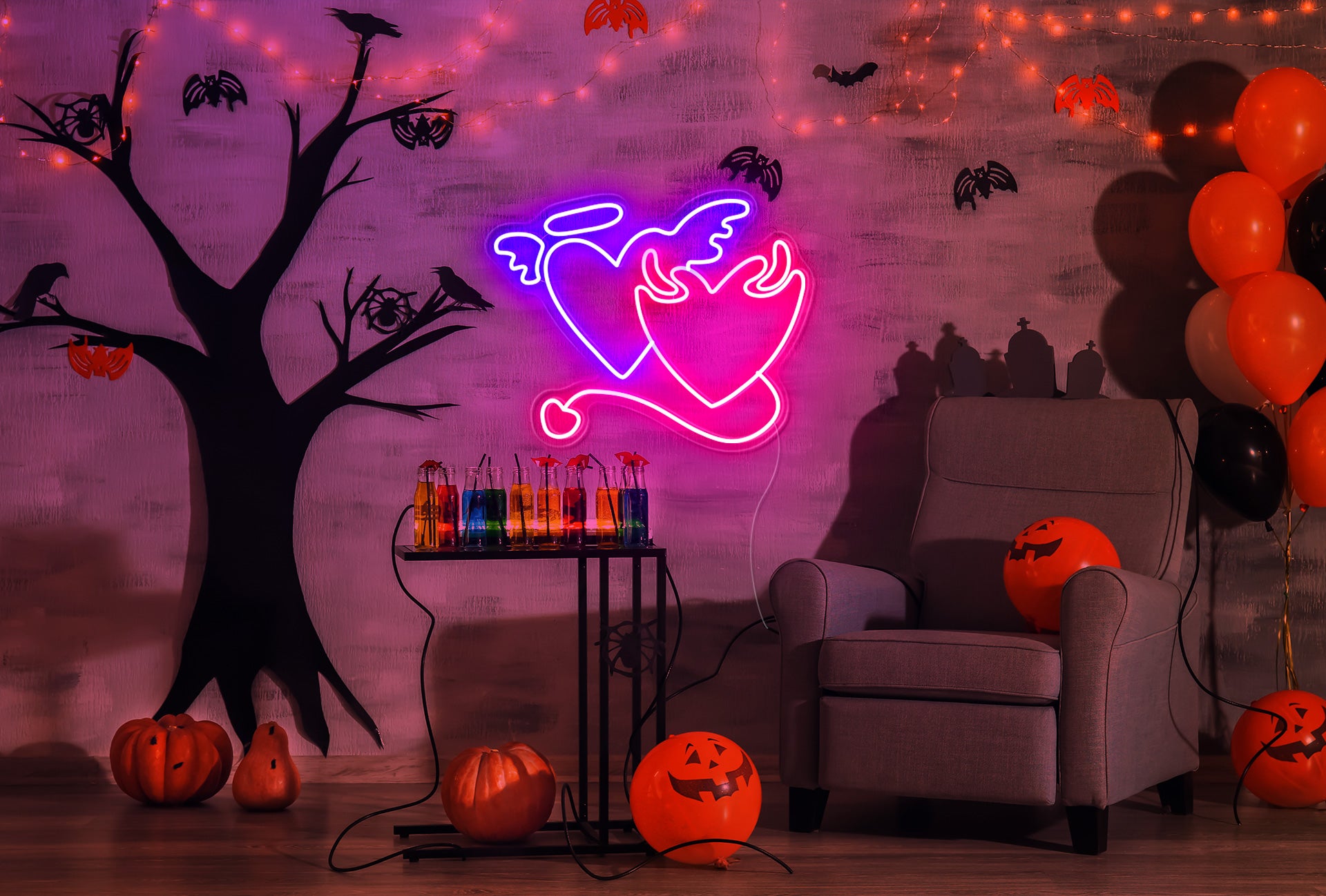 Have you ever thought about buying a cool neon sign for your room. This is definitely a good idea. Believe me! Angels & Devils Neon Sign is a cool neon sign that will definitely add a different vibe to your room. But if you're worried about neon light will heat up after long term usage. Please do not even worry about it! Our neon sign will be warm after long term usage, it have a long lifetime and 24 months of warrenty. So you don't nedd to wory about anything about it.