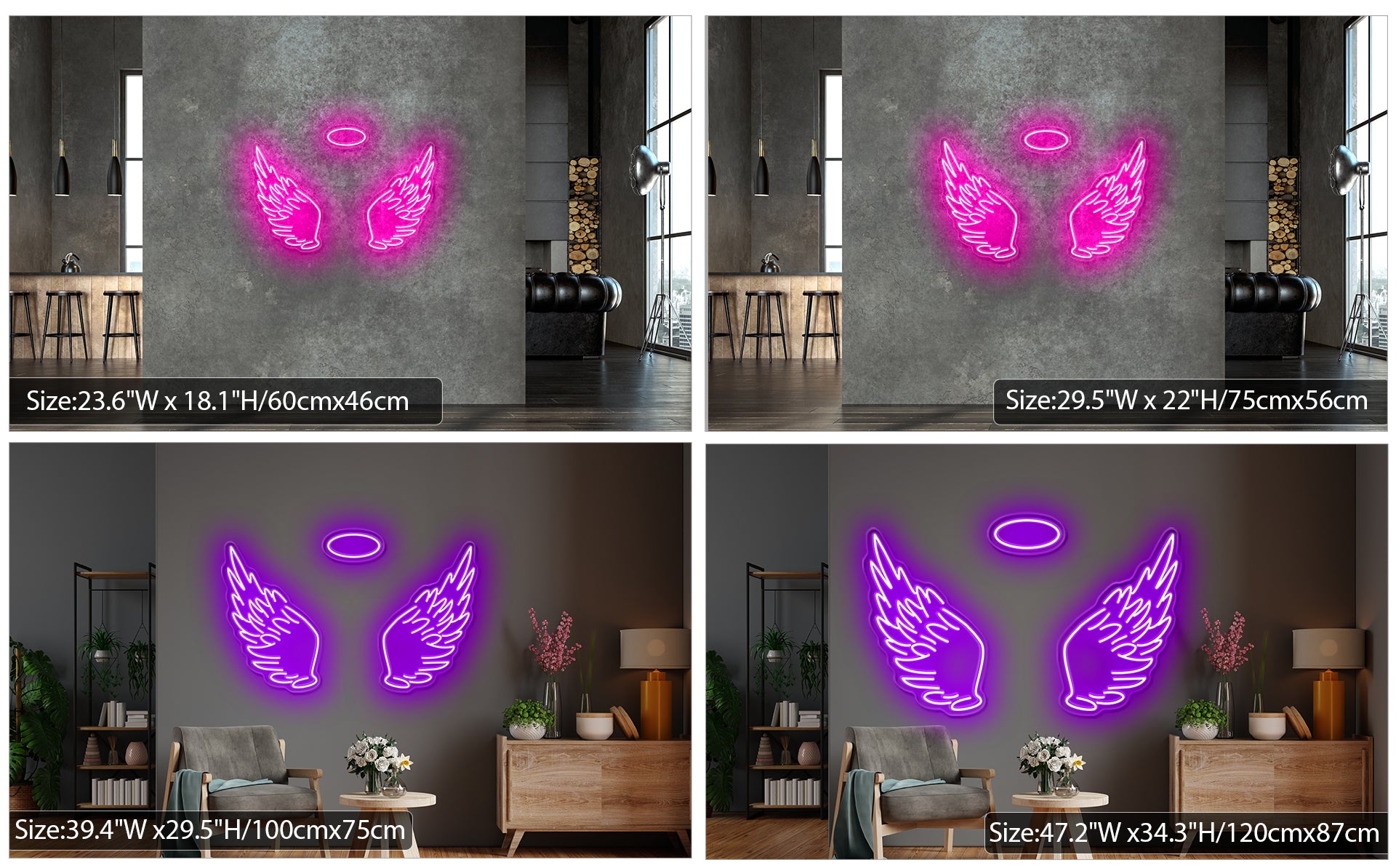 Whether you're a dreamer or a believer in the supernatural, our Customisable Angel Wings with Halo Neon will transport you to a realm of wonder. The soft glow of the wings creates a dreamy atmosphere, making it an ideal addition to your home, office, or sacred space.