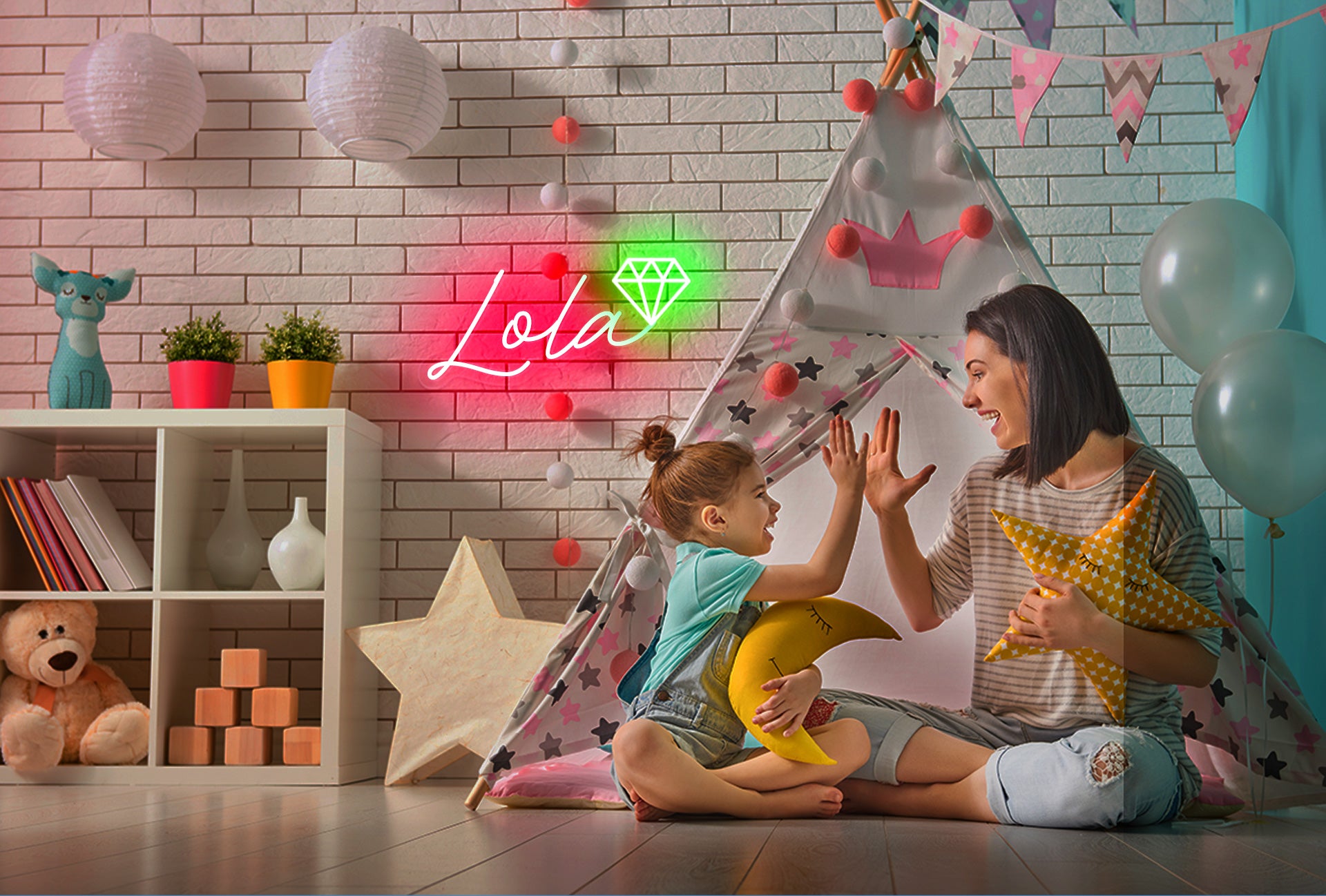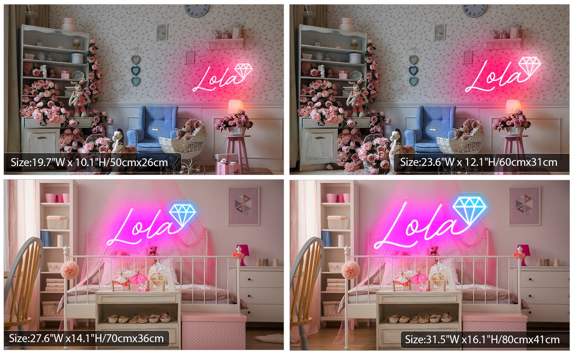 Light up your child's room with this customizable name neon signs with diamond neon wall art. neon signs are handmade, energy-efficient and safely for home decor, warming neon lights will make beautiful memories for boys and girls.  add a pop colour to their room and will keep them feel safe, That's a perfect for creating special gifts for any boy or girl.