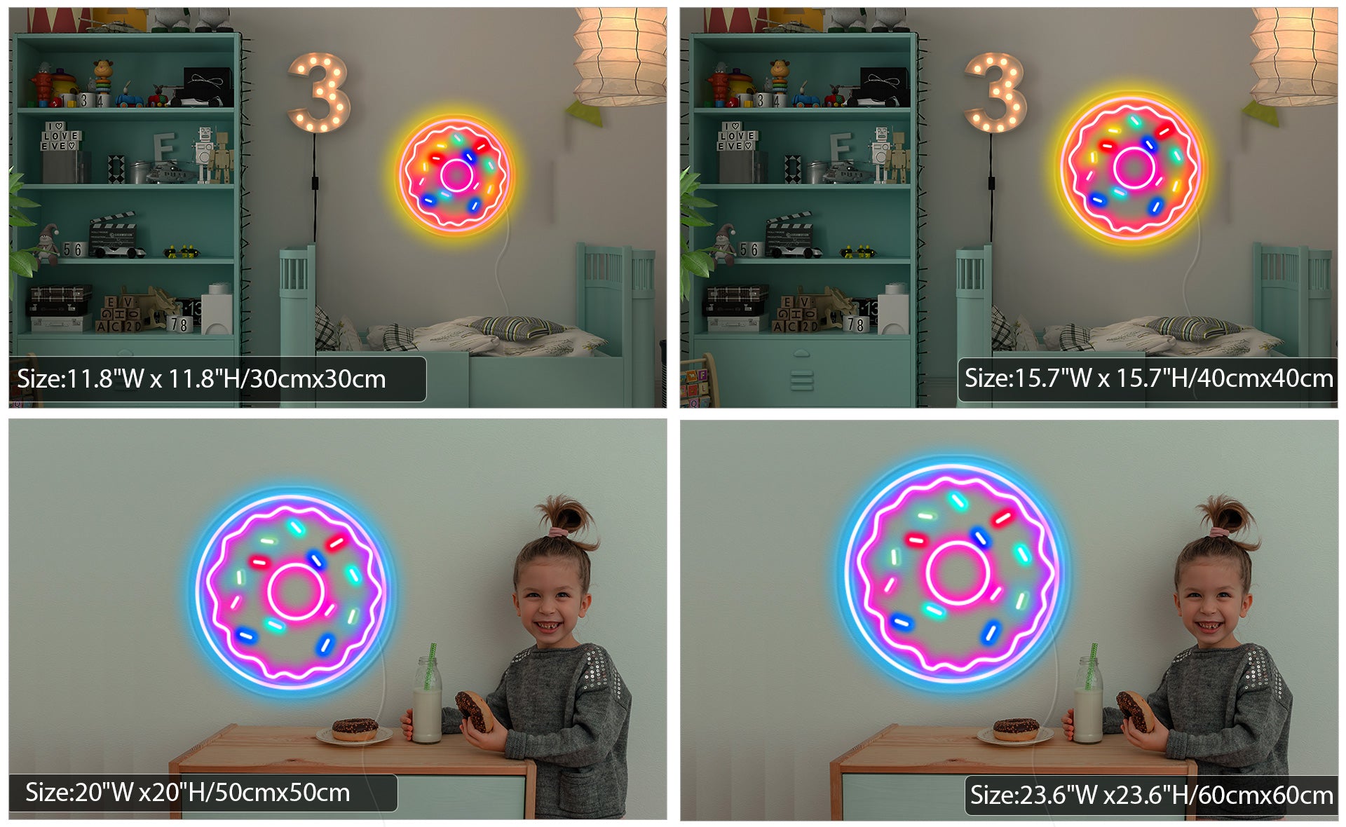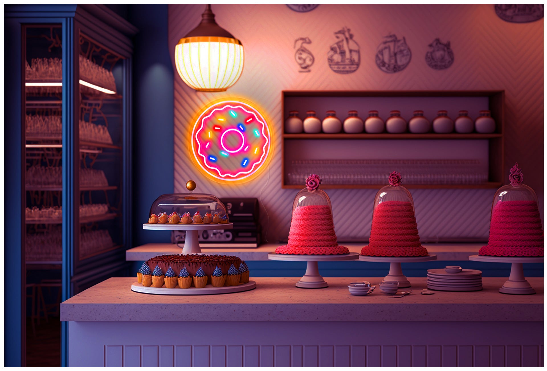 Satisfy your sweet tooth with this eye-catching Donut LED Sign. It will look perfect hanging up in your kitchen, and equally yummy in a donut shop or bakery. Please note, sprinkles are multicolour by default.