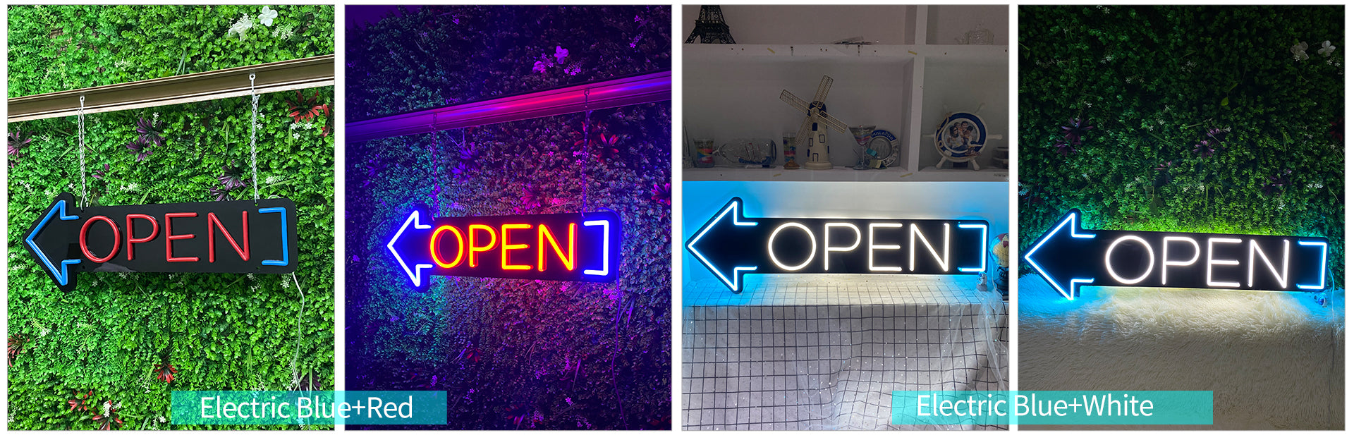 Let your business stand out with our Double Open signs! Our unique LED neon custom sign invites customers in and creates a welcoming atmosphere. With eye-catching colours of your choice, make sure passers-by know you're open and ready to go. Plus, it's durable and safe!