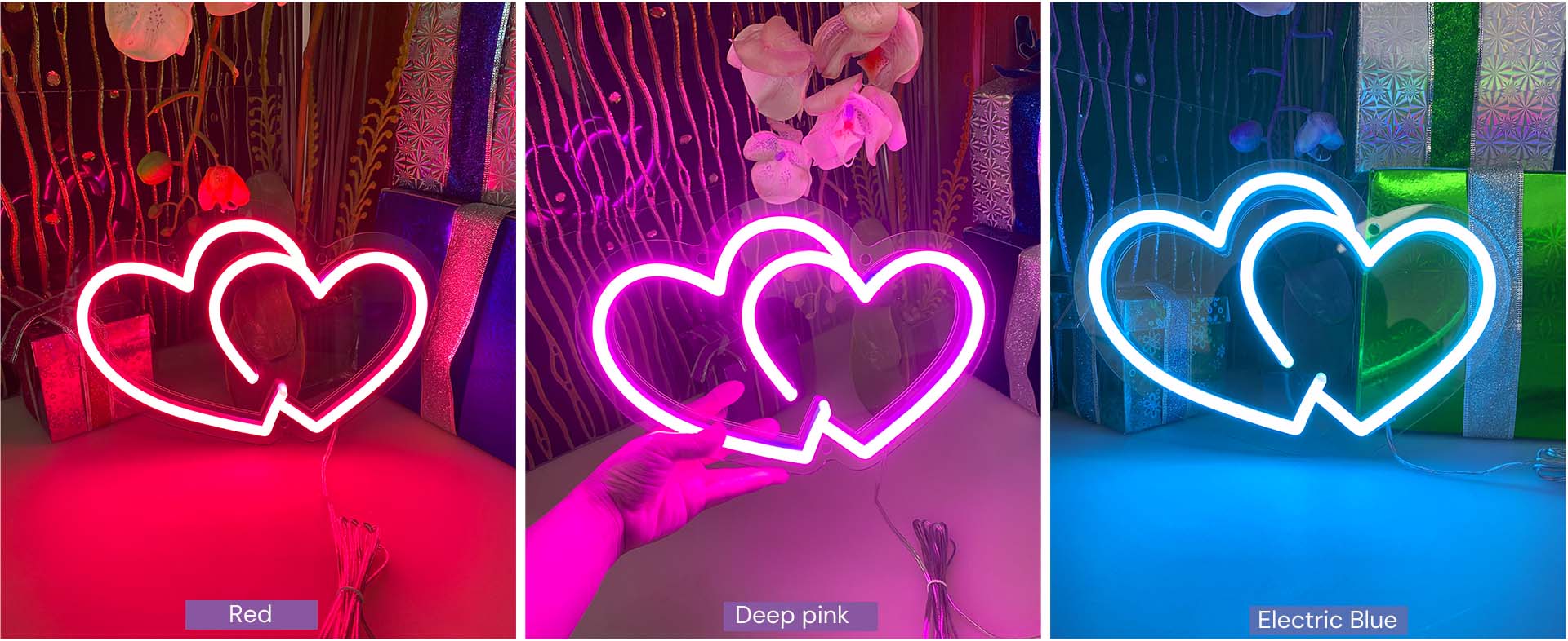 We offer four different ways to display your neon sign, each with different accessories for installation.