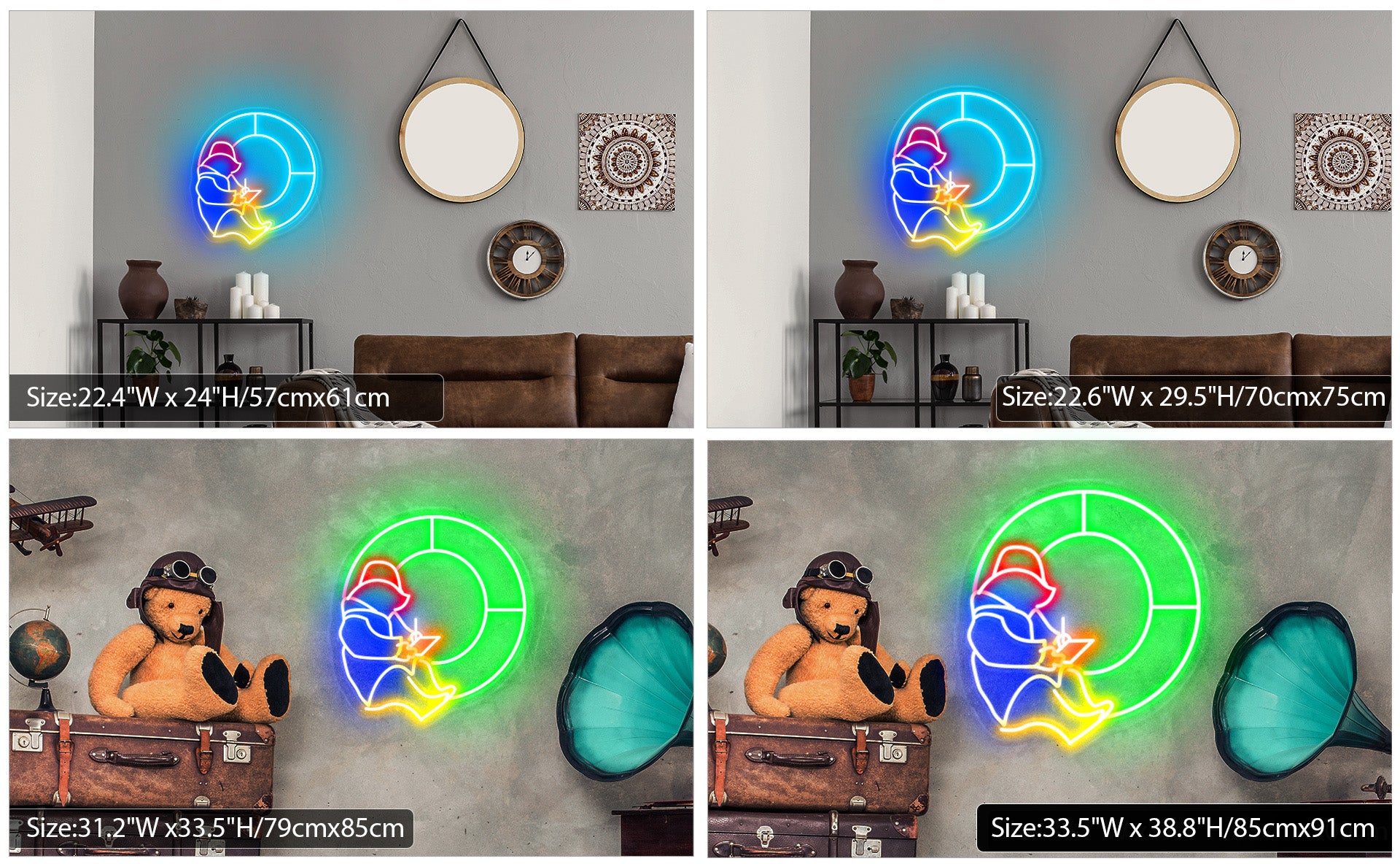 Our neon signs are handmade from environmentally friendly, soft silicone material which is cool to the touch. They consume little energy and have a low voltage of 12V.