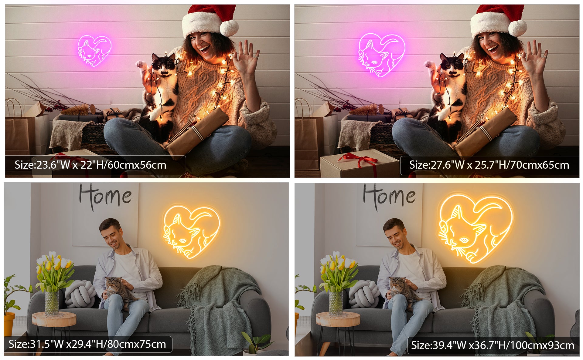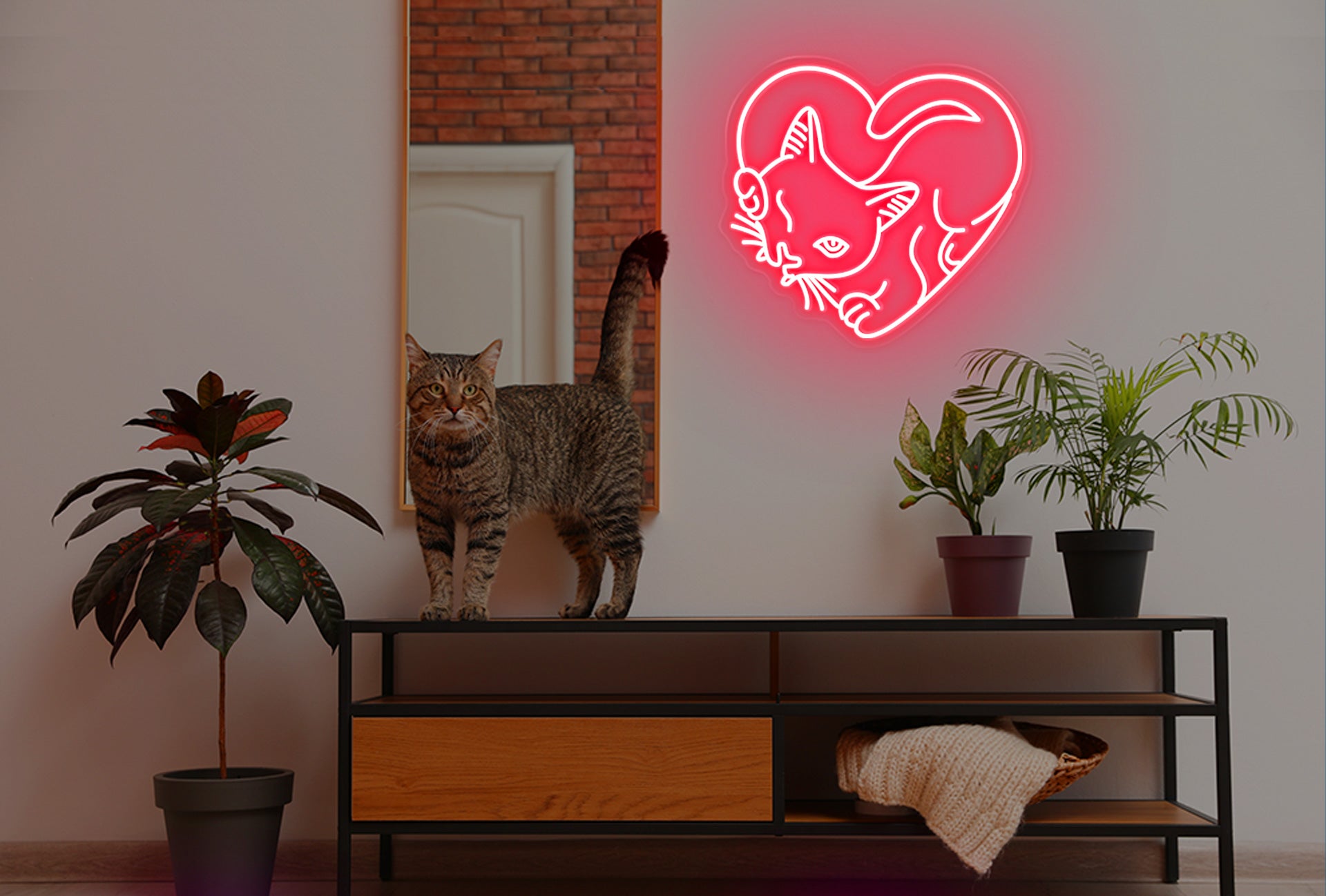 Step up your home decor with our Edgy Cat in Heart LED neon art. This purr-fectly unique piece combines the allure of neon lights with an adorable feline twist, adding a touch of rebellious charm to any space.