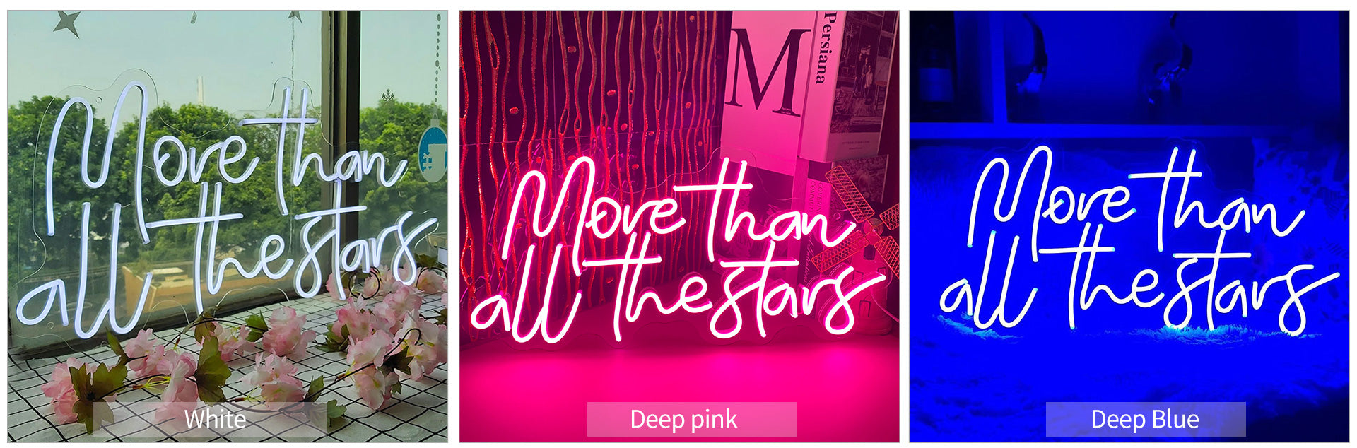The 'More than all the stars' LED neon sign is an incredibly beautiful and versatile piece of neon art that looks wonderful wherever it is displayed. Whether it's at your wedding, proposal or even in your home, this light is the perfect choice.